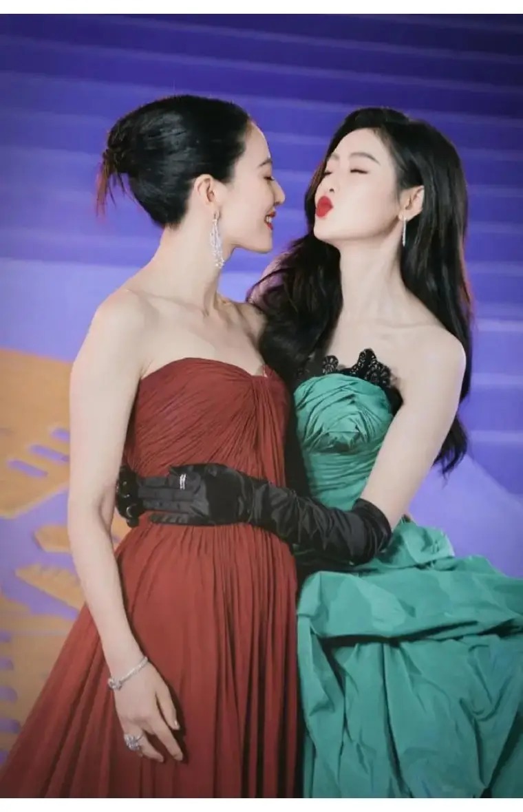 高圆圆、张天爱与电影《森中有林》剧组共同走上红毯,造型一红一绿,成为北影节红毯高光时刻,两大女神同框氛围感拉满,贴脸合照超养眼。